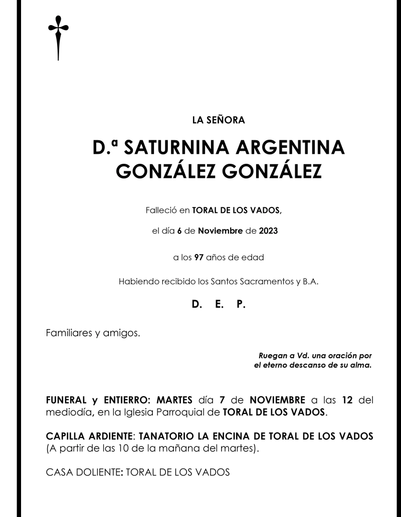 SATURNINA ARGENTINA GONZALEZ GONZALEZ