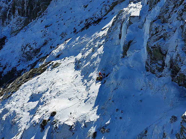 Tras establecer contacto visual, el helicóptero apoyó uno de los patines para que pudieran descender los rescatadores a la zona. En el lugar, estabilizaron al herido y le inmovilizaron el hombro. A continuación, el escalador fue izado hasta el helicóptero con el rescatador enfermero mediante el triángulo de evacuación y trasladado hasta el campo de fútbol de Béjar, donde esperaba una ambulancia soporte vital básico de Sacyl que se encargó de llevarle al Complejo Asistencial Universitario de Salamanca.