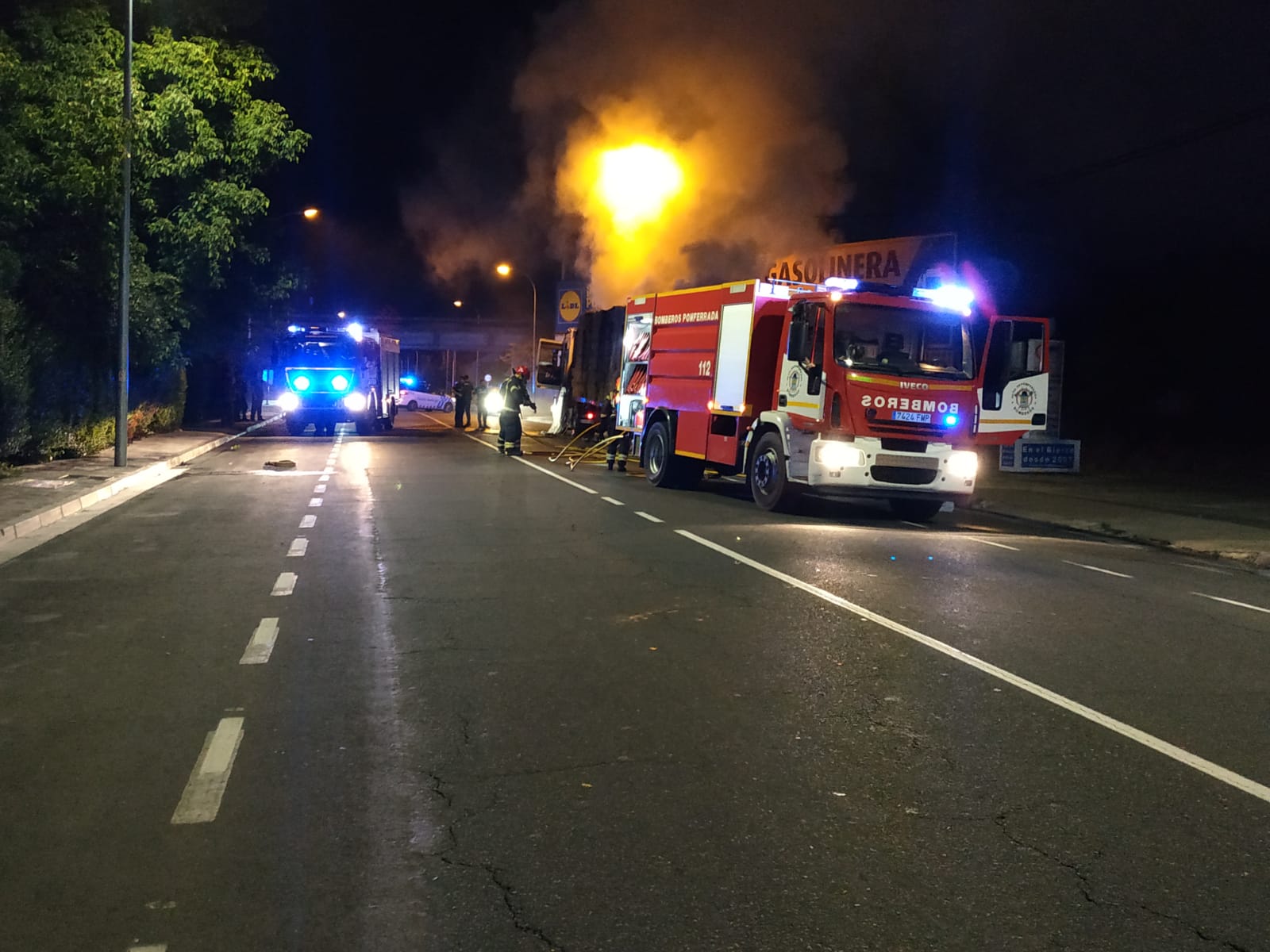 Según informaron fuentes del Ayuntamiento de la capital berciana, el fuego se originó pasadas las 3.30 horas, a pocos metros de la estación de servicio de Plenoil. Hasta el lugar se desplazaron cinco efectivos de los Bomberos de Ponferrada que se encontraban de servicio, más otros tres que fueron requeridos. Durante el inicio de las tareas de extinción, la Policía Local tuvo que restringir el tráfico en esta arteria de entrada a la ciudad.