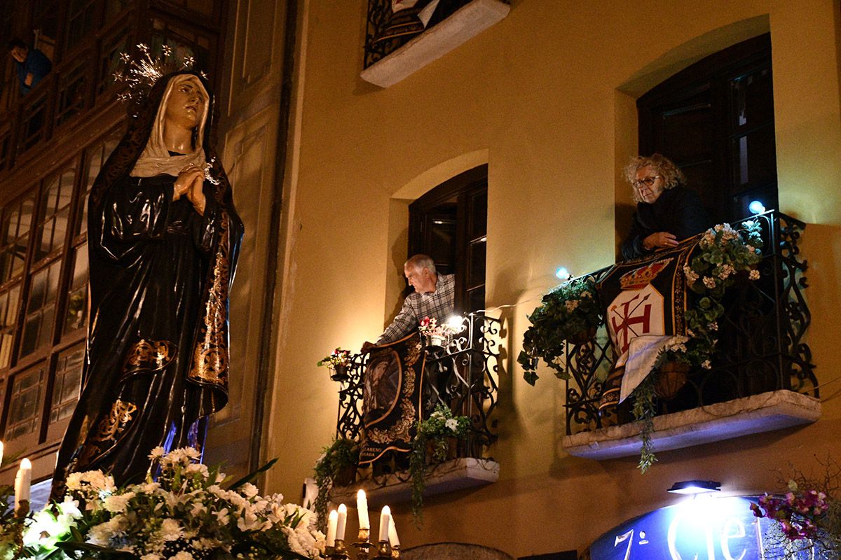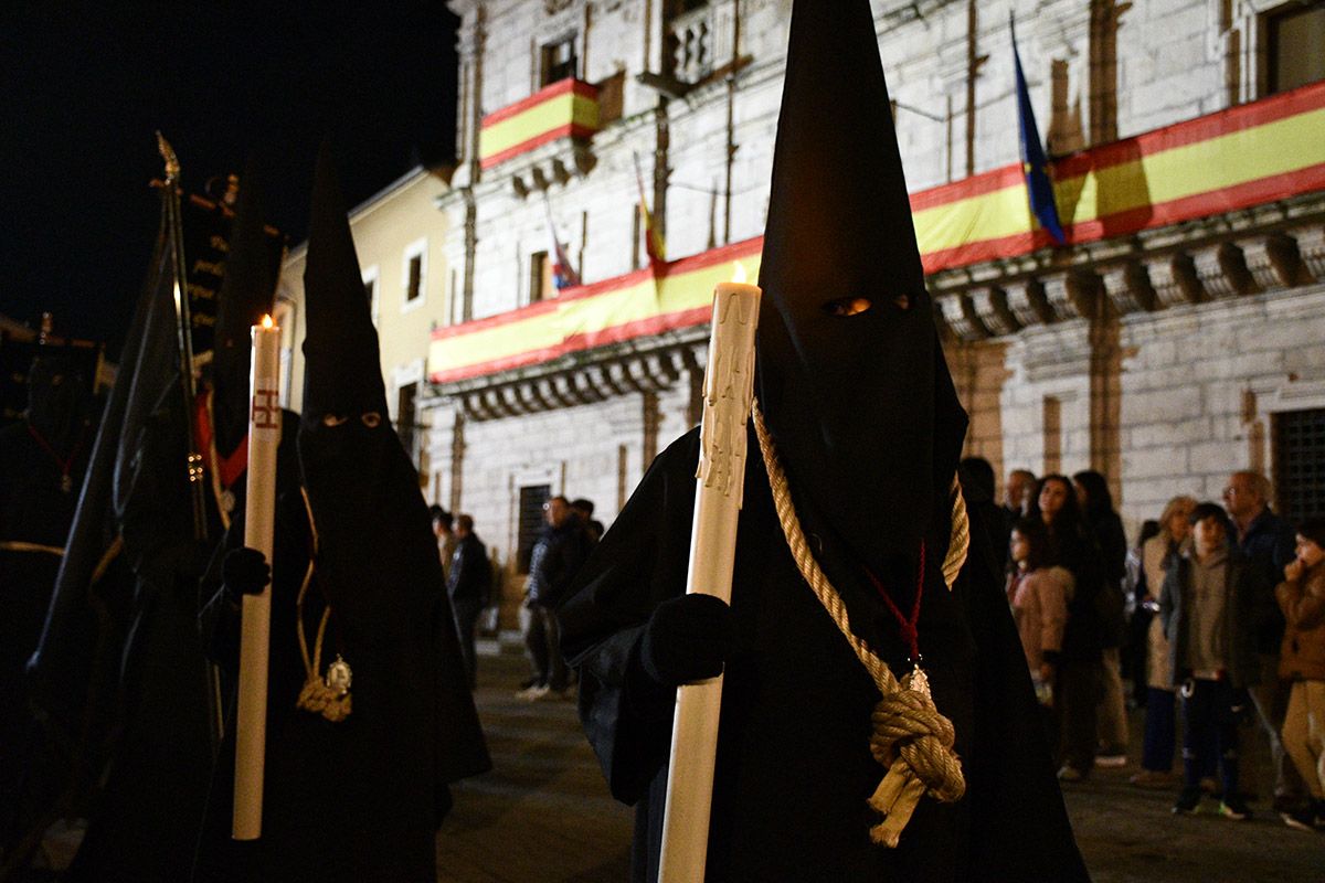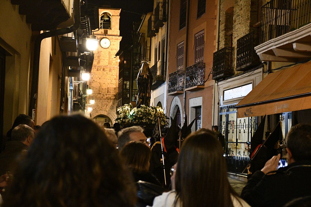 Organizada por la Hermandad Jesús Nazareno, recorrió en la noche las calles más emblemáticas del Casco Antiguo de Ponferrada. El canto de ‘Salve Regina’ puso el punto final a este comienzo procesional.