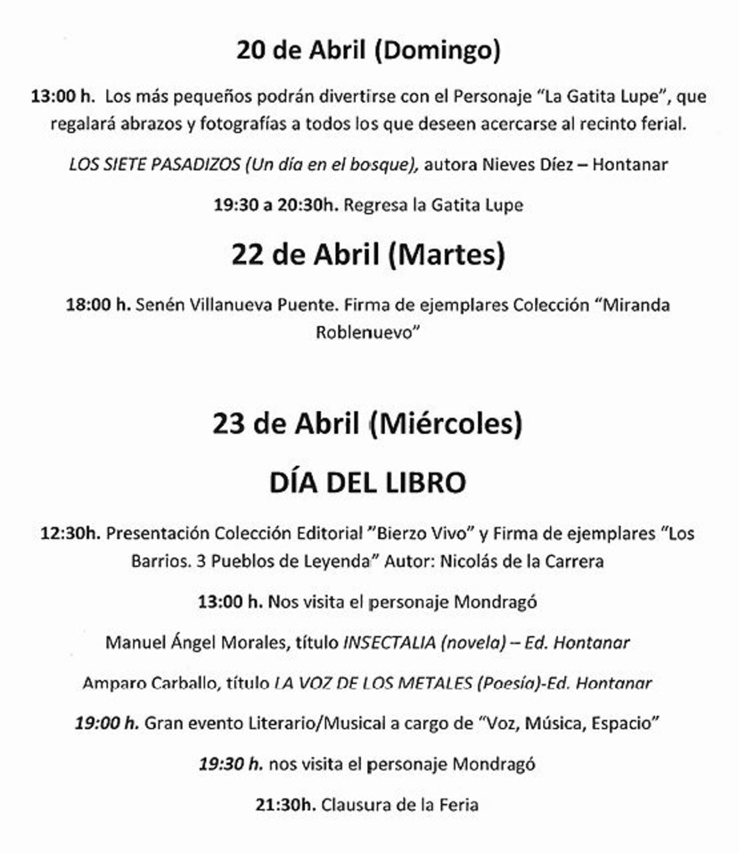A destacar que el día 23 de Abril (Día del Libro) la organización regalará una rosa de madera con la compra de un libro.