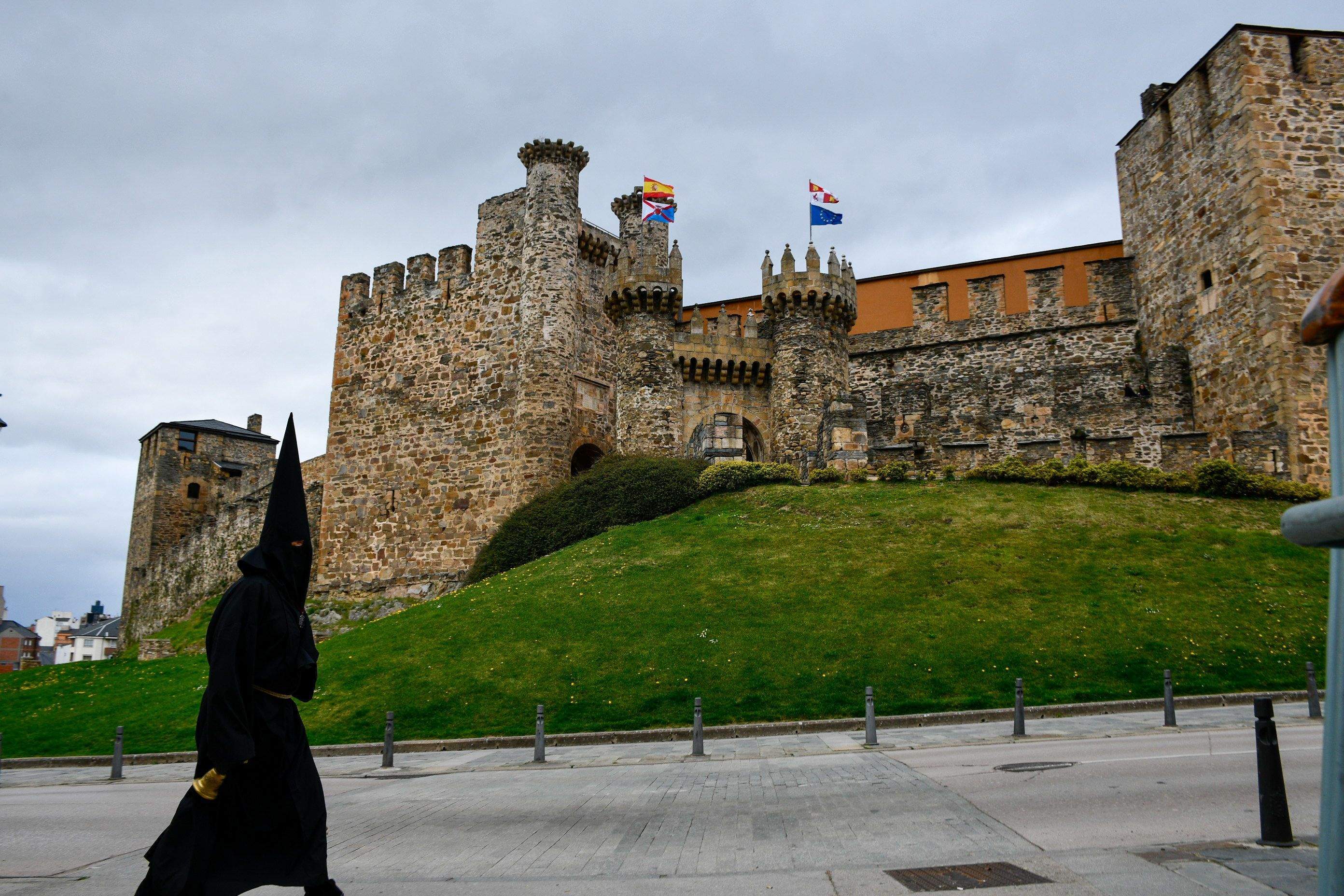 Creada por la Real Hermandad de Jesús Nazareno, la figura del Lambrión hunde sus raíces más de cuatro siglos atrás y es a día de hoy uno de los símbolos más reconocible de las fiestas de Pascua en la capital berciana. Desde 2018, la ciudad le dedica un espacio a las puertas del Castillo de los Templarios, en pleno recorrido del Camino de Santiago, donde una placa de bronce atestigua su importancia.