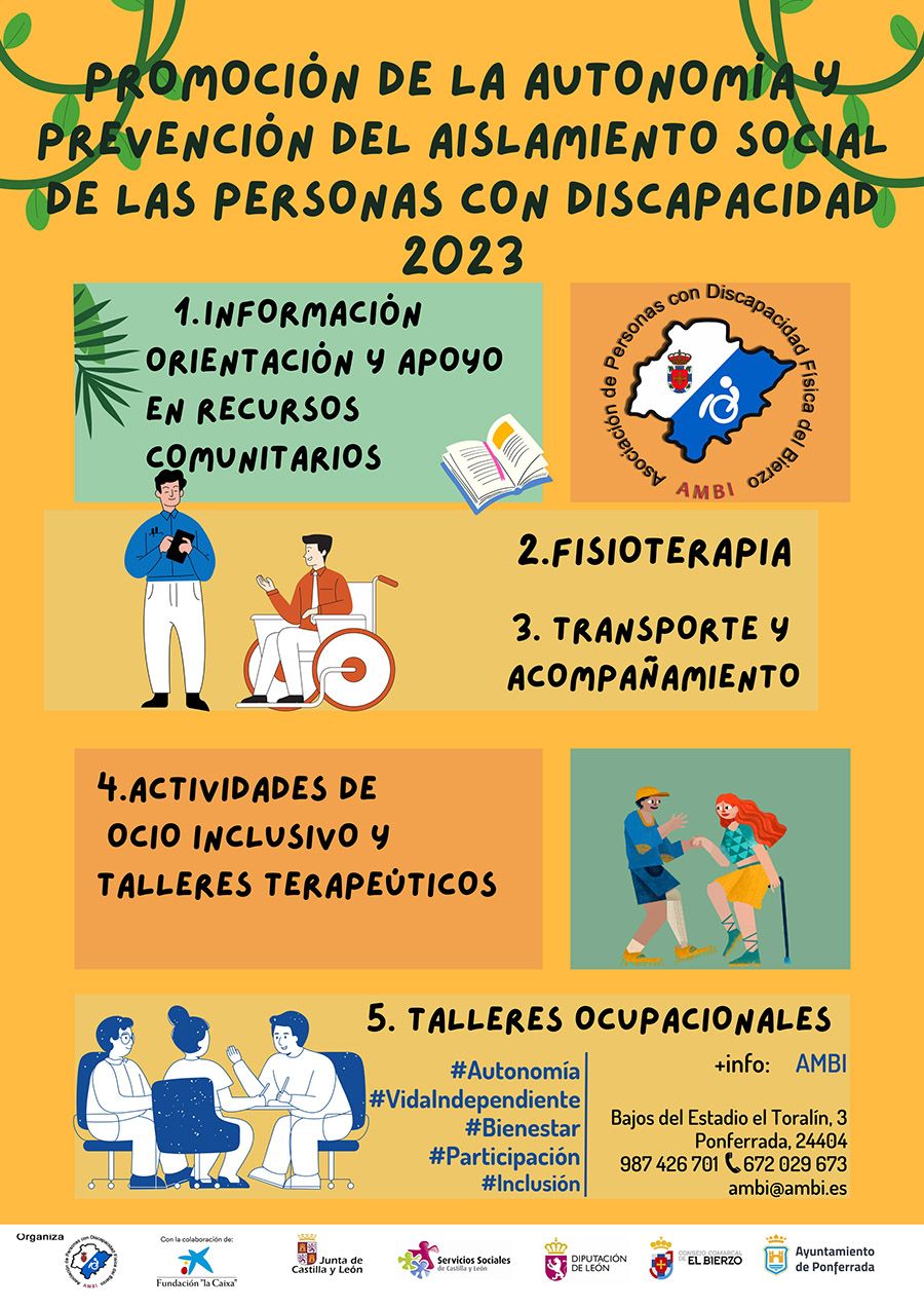 Los servicios contemplados en el programa son apoyo social, información sobre recursos comunitarios, trámites para acceder a ellos, organización de actividades de ocio inclusivo y talleres terapéuticos, servicios de transporte y acompañamiento a personas con discapacidad así como servicios de fisioterapia y talleres ocupacionales. Para su ejecución se contará con equipo multidisciplinar formado por una trabajadora social, una educadora social, dos asistentes personales y una fisioterapeuta.