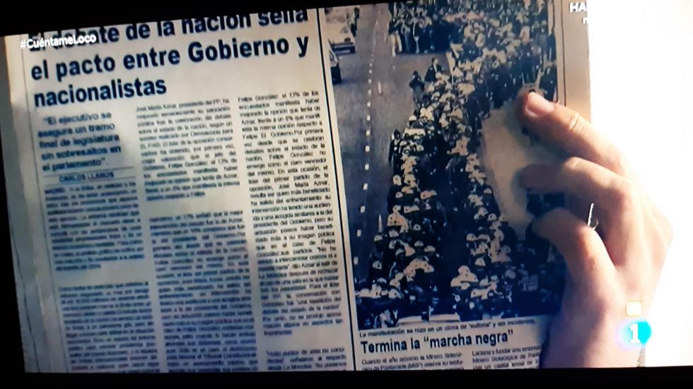 Este jueves 4 de febrero, Televisión Española emitió el capítulo 374 de la vigésimo primera temporada de “Cuéntame Cómo Pasó” ambientada en el año 1992. Por aquel entonces sucede la “Marcha Negra”, iniciada el 8 de marzo desde Villablino (Laciana) con destino el Ministerio de Industria en Madrid, liderado por Claudio Aranzadi, en tiempos del socialista Felipe González. El capítulo permite al espectador recordar el conflicto minero a través de la visita que realiza Toni Alcántara a la Moncloa.