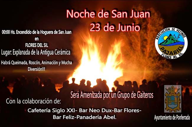 La Asociación de Vecinos del barrio ponferradino comenzará la celebración el domingo 23 de junio a las 20.30 horas con actividades infantiles (fiesta de la espuma); a las 22.00 horas verbena a cargo del Grupo Musical Magikal; 23.00 hora sopas de ajo; y a las 00.00 horas encendido de la hoguera y a continuación gran queimada y fin de fiesta. El sitio elegido para celebrar la noche mágica es el aparcamiento del antiguo economato.