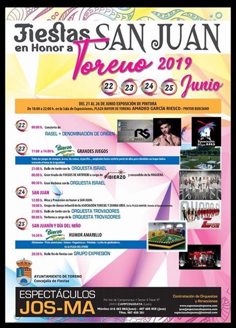 El municipio acoge del 22 al 25 de junio sus Fiestas en Honor a San Juan, con un amplio programa de actividades. La hoguera se encenderá la noche del 23 a las 00.00 horas tras el lanzamiento de fuegos artificiales.
