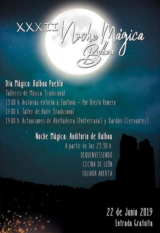 Una de las citas más consolidadas es la Noche Mágica de Balboa, que alcanza su 32 edición ampliando las actividades durante la jornada diurna (CONSULTA EL PROGRAMA). En esta ocasión se celebrará el sábado 22 de junio con talleres y conferencias durante la mañana y la tarde. Con la puesta de sol, y a los pies del Castillo como es tradición, comenzarán las actuaciones musicales que se extenderán durante toda la noche.