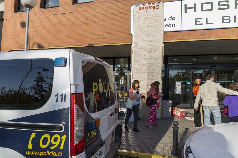 El encierro en el Hospital El Bierzo protagonizado por miembros de la Asamblea de Usuarios por la Sanidad Pública del Bierzo y Laciana desde el pasado 24 de julio concluyó en la mañana de este miércoles con un desalojo ordenado por la Subdelegación del Gobierno y ejecutado por agentes de la Policía Nacional tras una resolución adoptada por la Gerencia de Asistencia Sanitaria del Bierzo. La intervención policial se produjo minutos antes de las 7.00 horas sin incidentes con los encerrados, que retiraron sus pertenencias y materiales del hall del centro sanitario. Al mediodía decidirán en una reunión nuevas medidas de protesta.