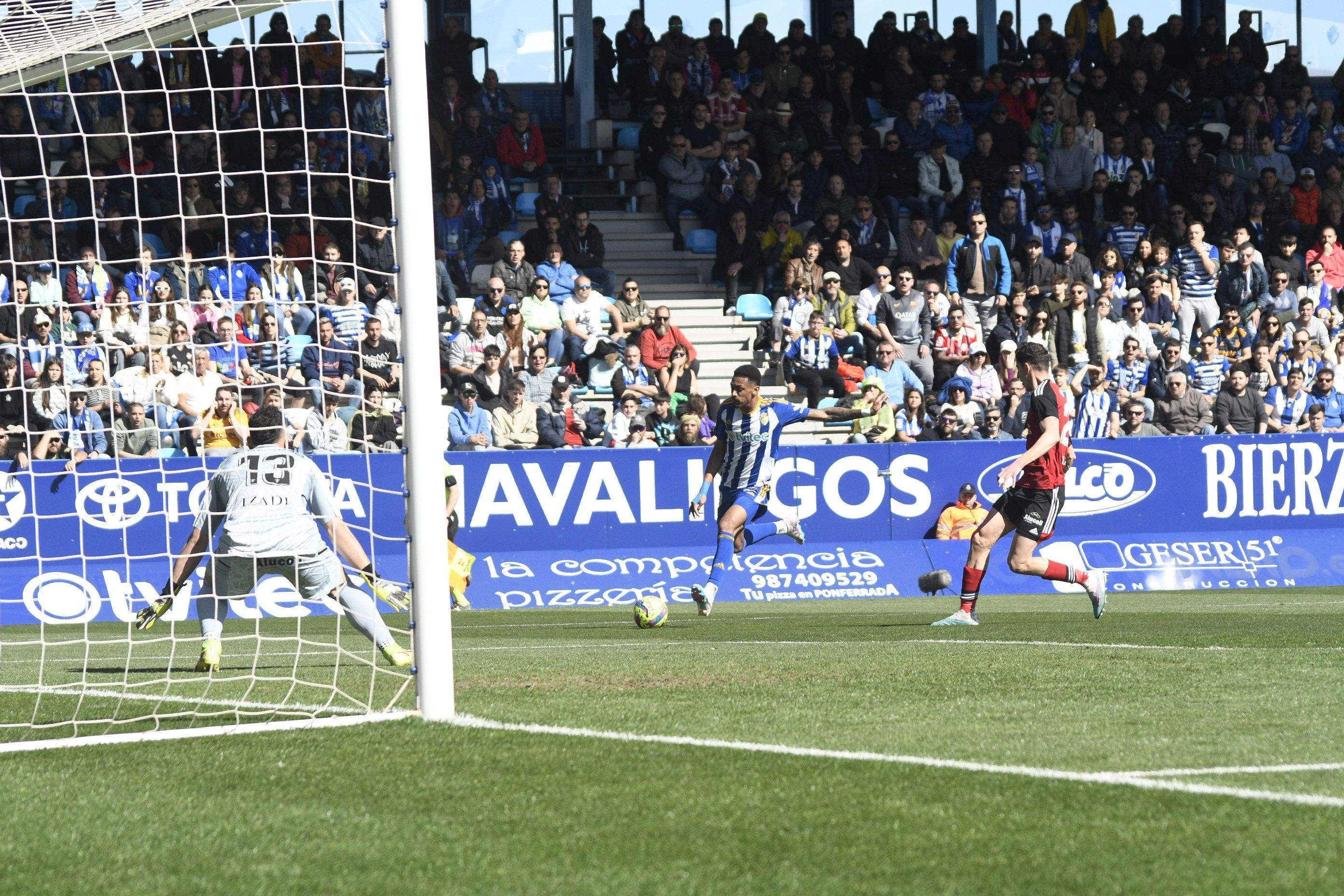 De hecho, tuvo dos ocasiones el conjunto berciano en los primeros minutos, pero el remate de Espiau tras recibir de Naím rebotó en un defensa y un golpeo lejano de Ojeda se fue alto. Dominó el cuadro ponferradino y acarició el gol con un remate de cabeza de Espiau después de una falta lateral que acabó en las manos de Herrero y una intervención del propio arquero a otro testarazo del delantero.