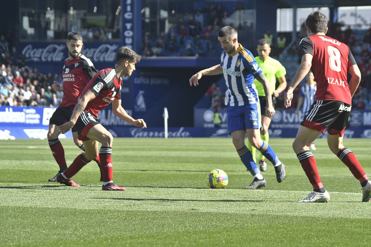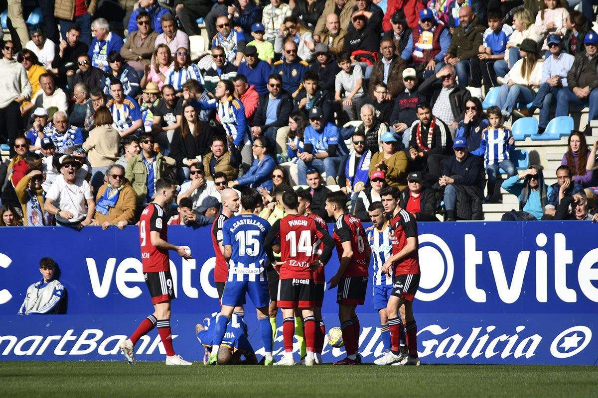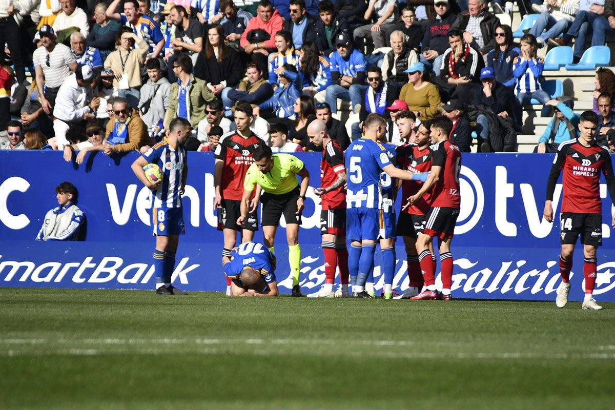 Le costó mucho al cuadro de Miranda de Ebro encontrar vías de ataque y sólo amenazó a Amir en un primer acercamiento con un centro de Jofre que no generó ningún problema. Pocos acercamientos protagonizaron en los primeros cuarenta y cinco minutos los de Joseba Etxeberria, que apenas hicieron méritos para romper el 0-0 con el acabaron los primeros cuarenta y cinco minutos. Sí los hizo la Deportiva.