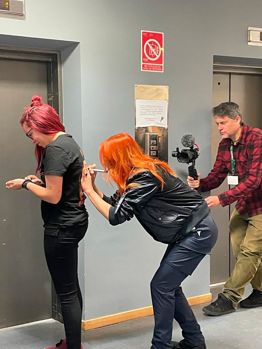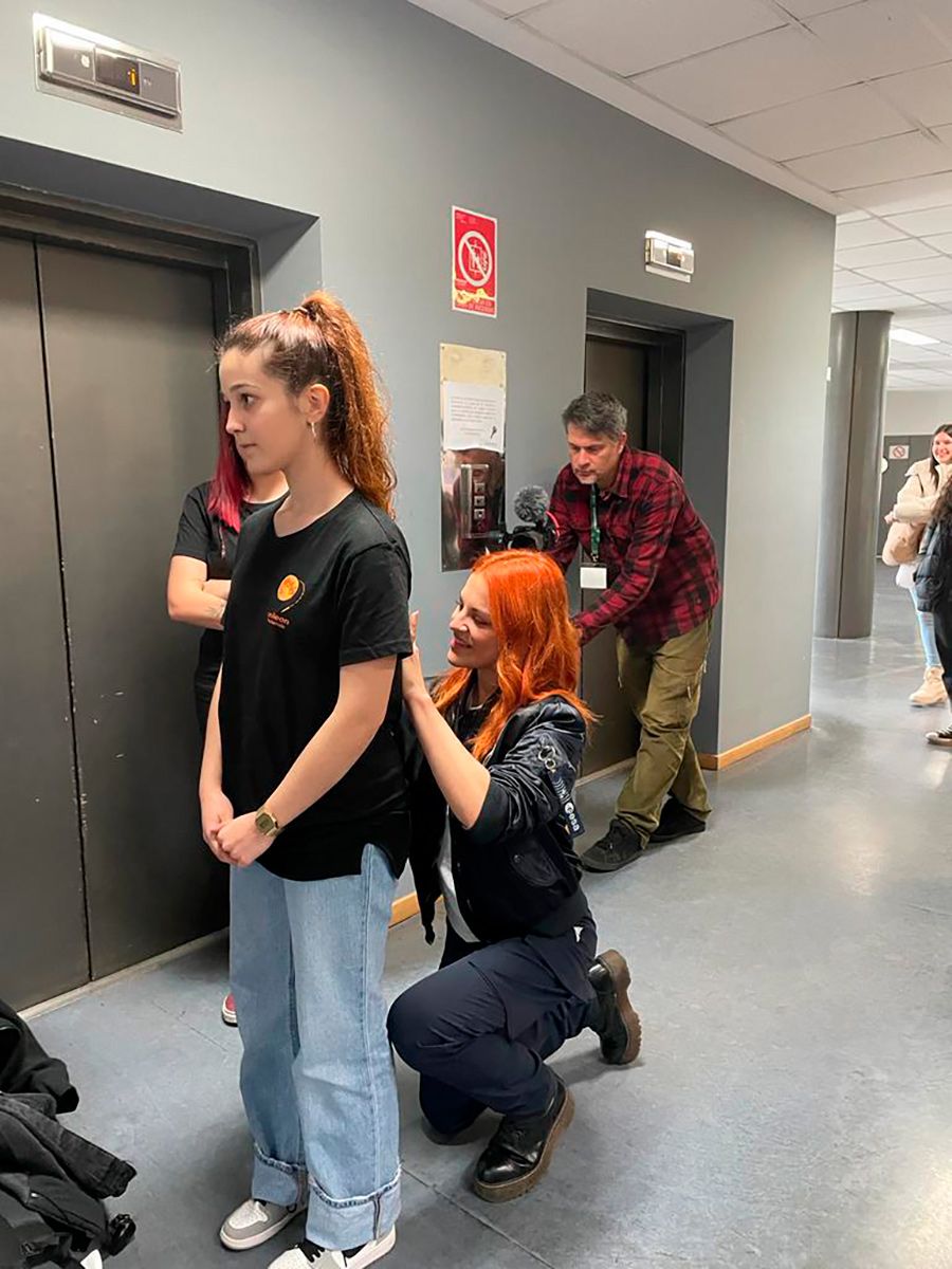 Sara García ha recibido la camiseta y agradecido el regalo, y después, durante su visita al Campus, ha firmado las camisetas de varias alumnas que la llevaban puesta.