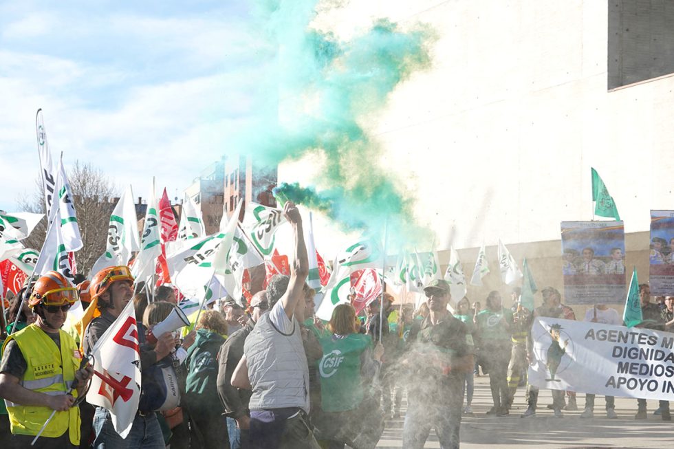 Los trabajadores lanzaron consignas contra el consejero con pancartas en las que se podía leer: “Agentes forestales en lucha” o “Agentes Medioambientales. Dignidad, Seguridad, Medios de Defensa, Apoyo Institucional”. La periodista Franca Velasco se encargó de leer un manifiesto, en el que el colectivo destaca que los empleados públicos “no deben soportar ante los ciudadanos la responsabilidad” que provoca la “ineficacia” de los cargos políticos.