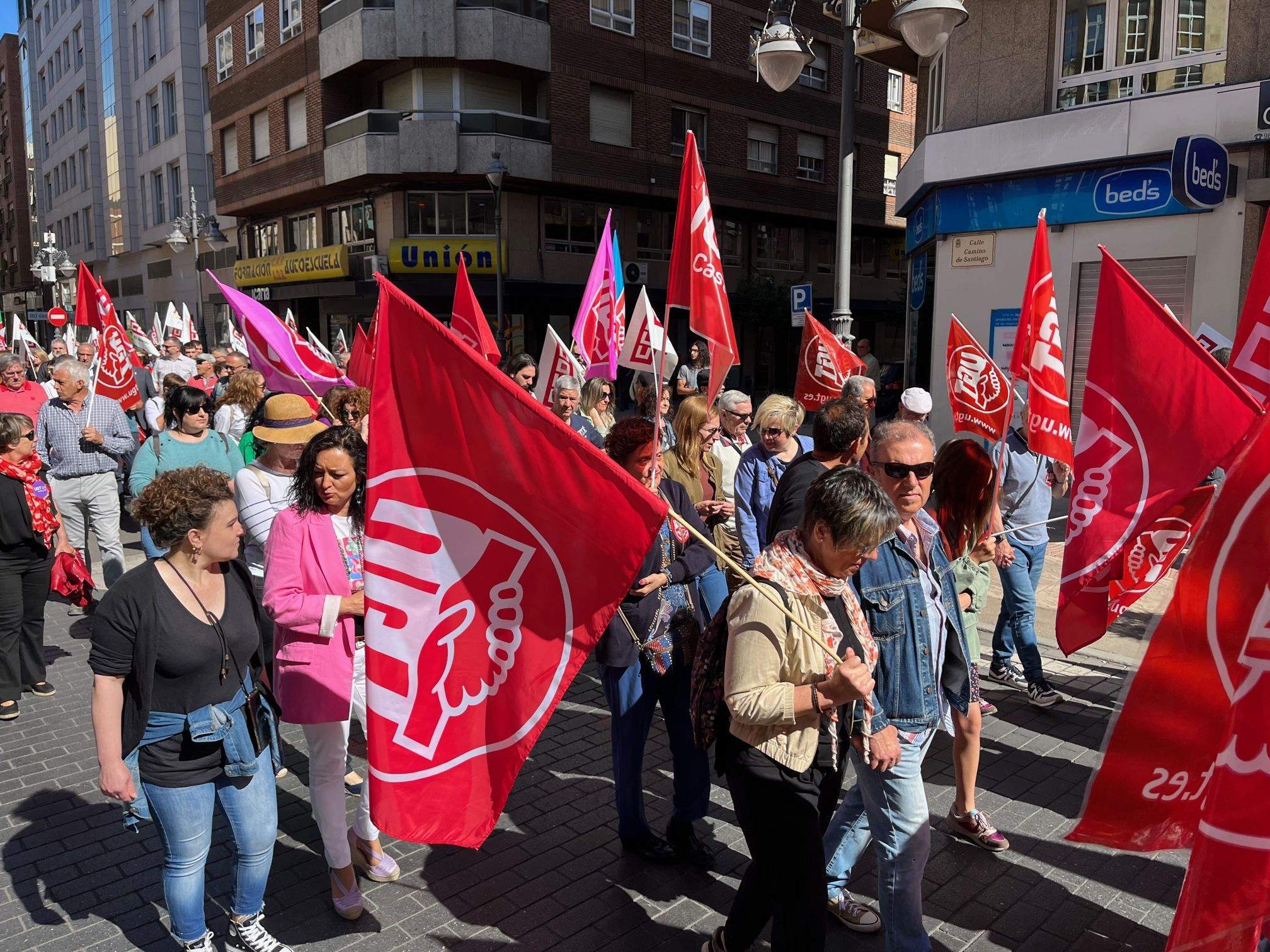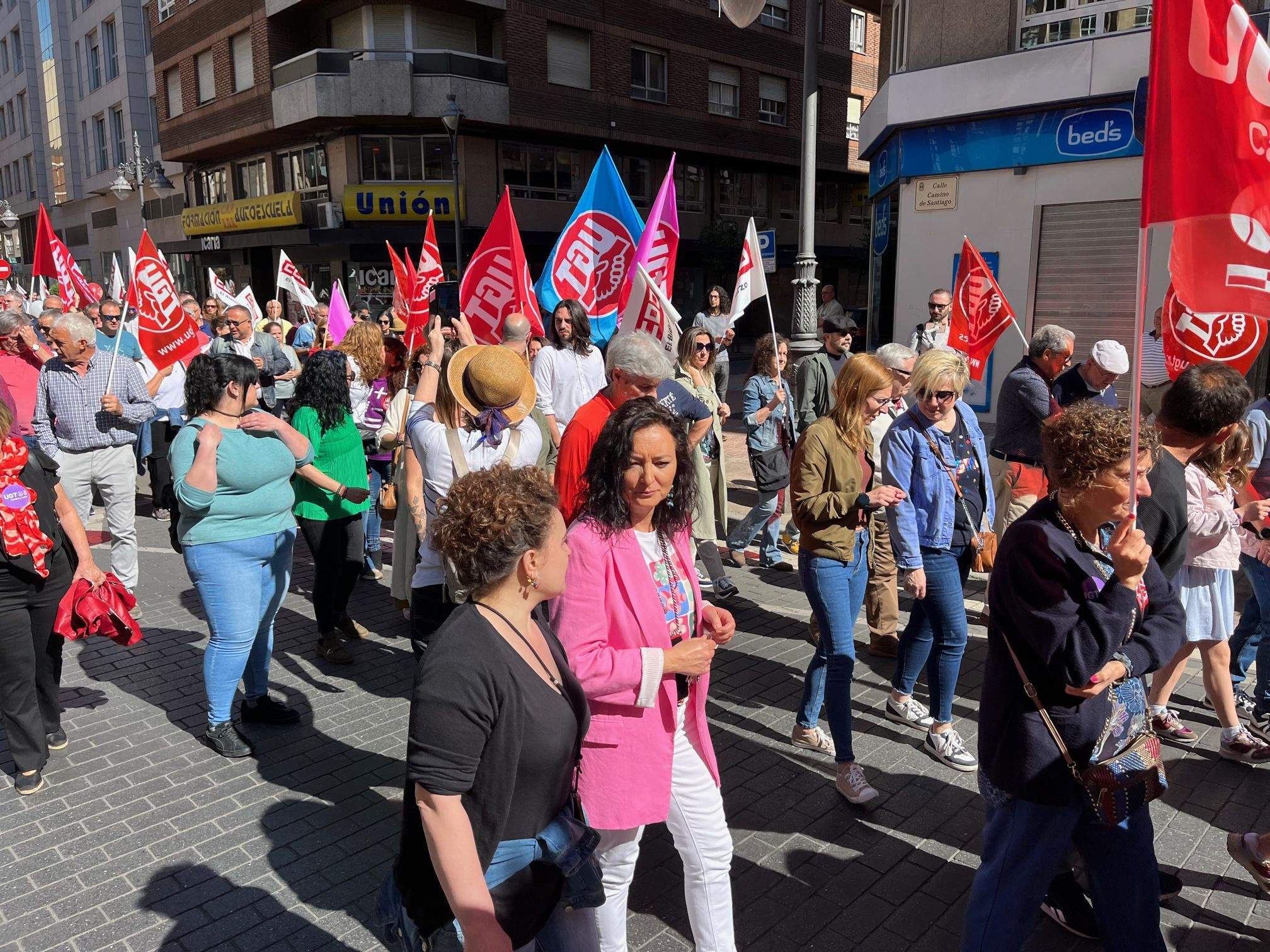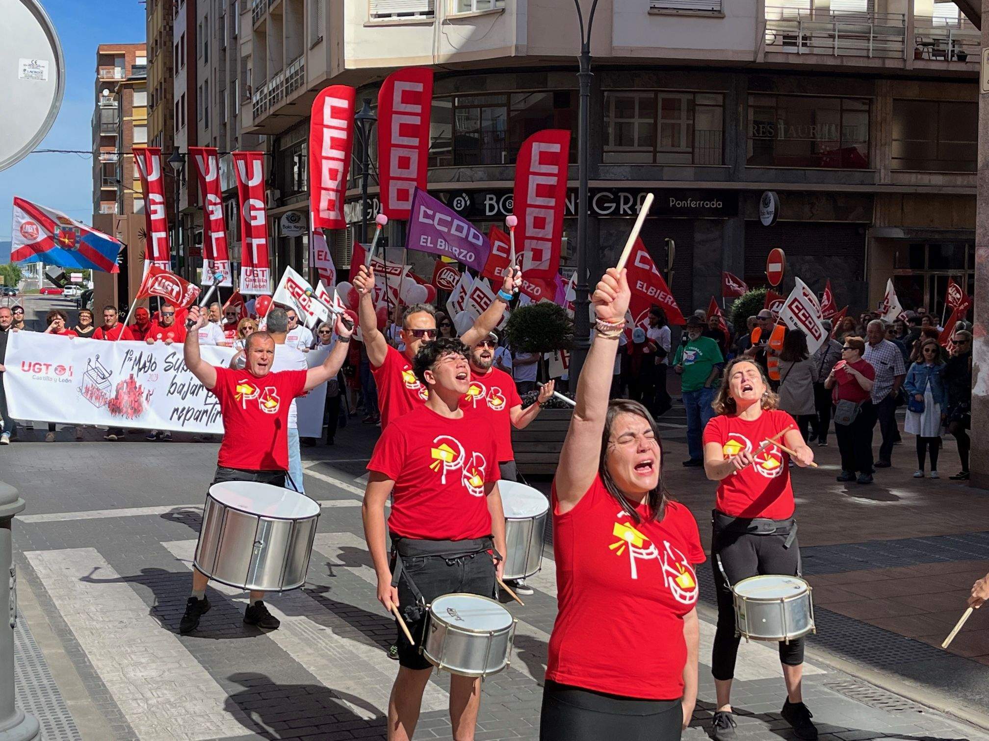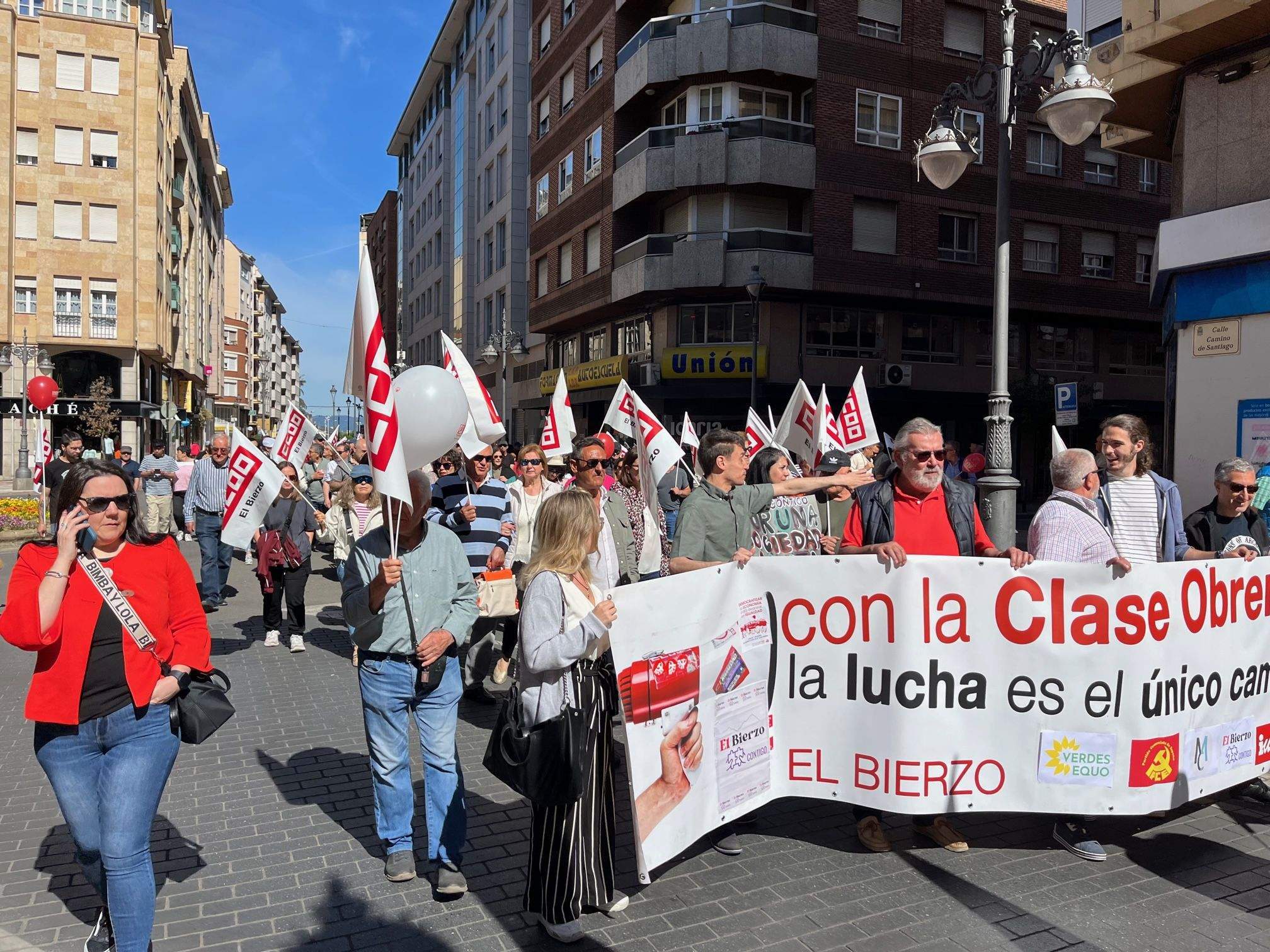 Las calles del centro de Ponferrada han vuelto a ser el escenario del recorrido de la manifestación del 1 de mayo en El Bierzo, por el Día Internacional del Trabajo. Una cita reivindicativa que ha visto mermada este 2023 su participación una bajada de participación, según reconocían los propios líderes sindicales de CC.OO y UGT en la Comarca.