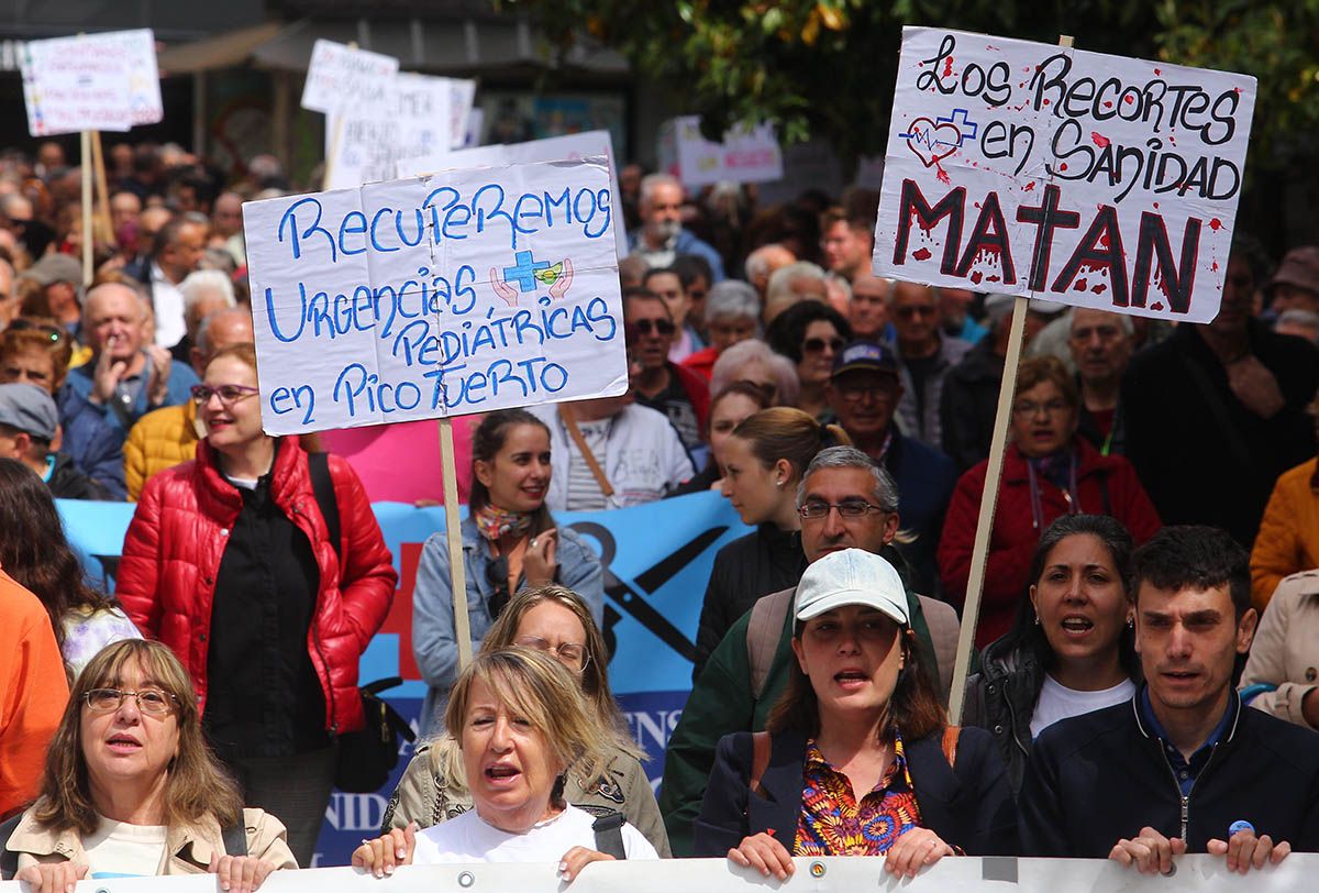 Aunque en varias capitales y ciudades de la Comunidad, en la capital berciana ha contado con la presencia de sindicatos, políticos, y cientos de vecinos que encabezados por la Plataforma han solicitado el "regreso de las urgencias pediátricas a Picotuerto", que "se deje de externalizar servicios con conciertos público-privados como el caso de los rayos, o en un futuro cercano, de la radioterapia, que se cubran las plazas vacantes y se palie la escasez de profesionales sanitarios" y que "el consejero de Sanidad, Alejandro Vázquez, dimita".