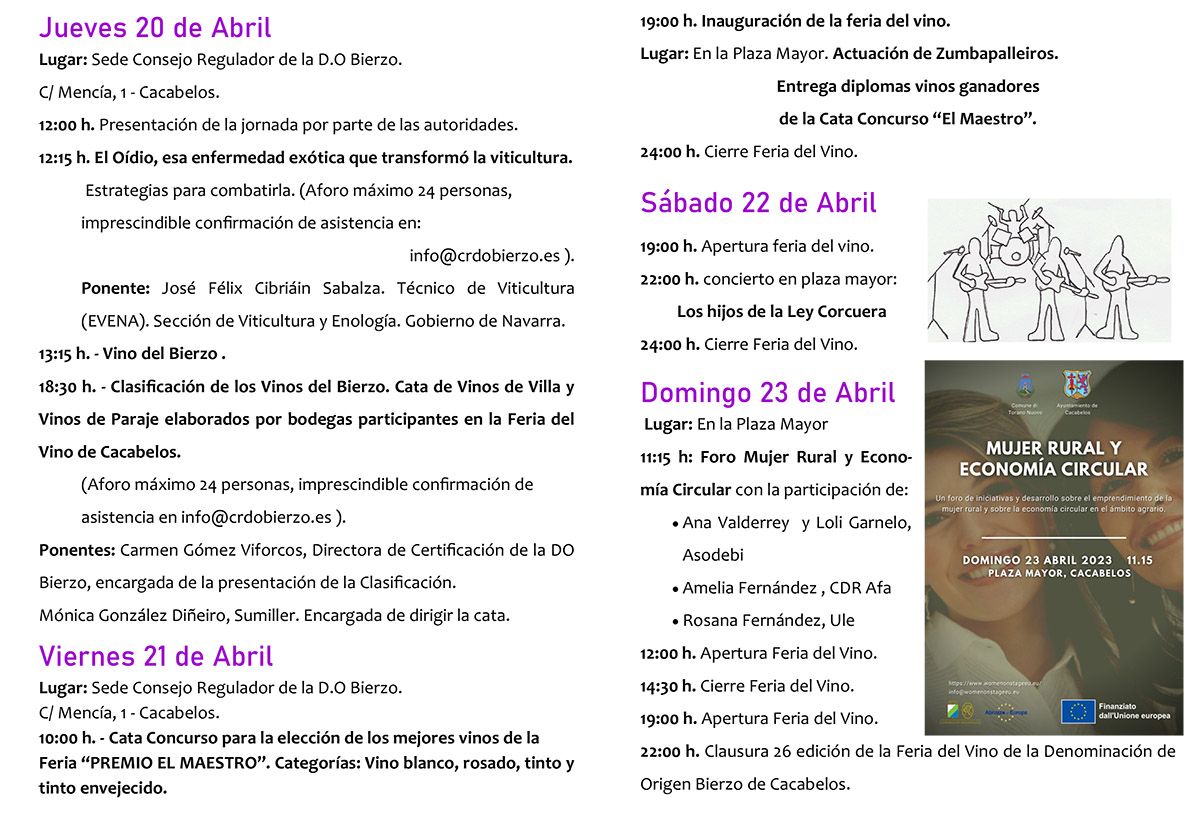 Además, la feria contará con las actuaciones musicales de la banda de rock local Hijos de la Ley Corcuera, del grupo folklórico Zumbapalleiros y de la Gastrotuna. Las actividades se completan con una jornada sobre el papel de la mujer en el desarrollo de la economía circular, organizada de manera conjunta con el municipio italiano de Tuorano Nuovo, con el que la villa del Cúa mantiene un hermanamiento desde hace varios años.