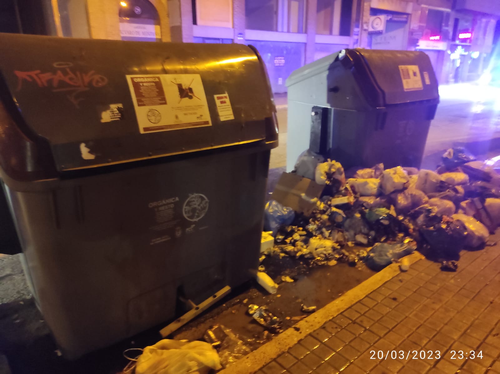 Los bomberos tienen que asistir de urgencia en hasta 12 incendios en puntos de contenedores, tanto exteriores como subterráneos, en pleno centro de la ciudad y también barrios, en la noche que se cumple la primera semana de huelga y pocas horas después