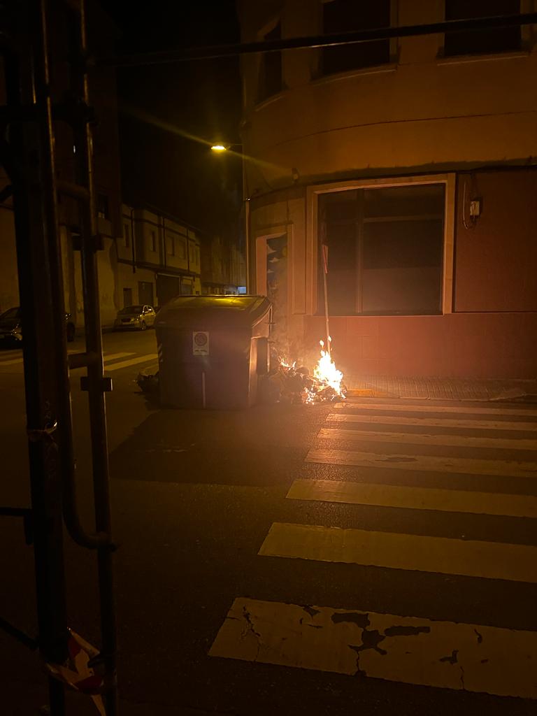 Uno de los incendios de esta noche, en los contenedores de Av. España de la capital berciana / INFOBIERZO