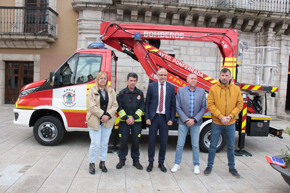 foto archivoEl alcalde de Ponferrada, Olegario Ramón presentó, junto al concejal de Protección Civil y Seguridad Ciudadana, José Antonio Cartón, y al jefe del Servicio Municipal de Extinción de Incendios (Speis), Olivier Bao, un nuevo vehículo de trabajo en altura (VTA) para mejorar las prestaciones del servicio de Bomberos. El Ayuntamiento ha destinado 150.000 euros de fondos propios a la adquisición de este nuevo vehículo.