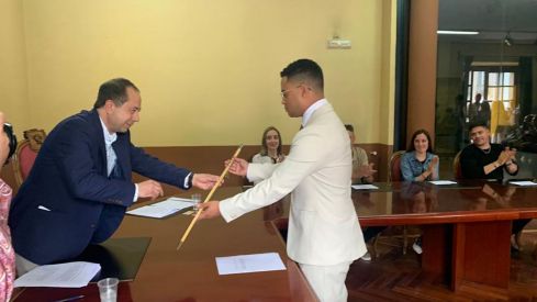 Anderson Batista alcalde Villafranca, recibiendo el bastón de mando