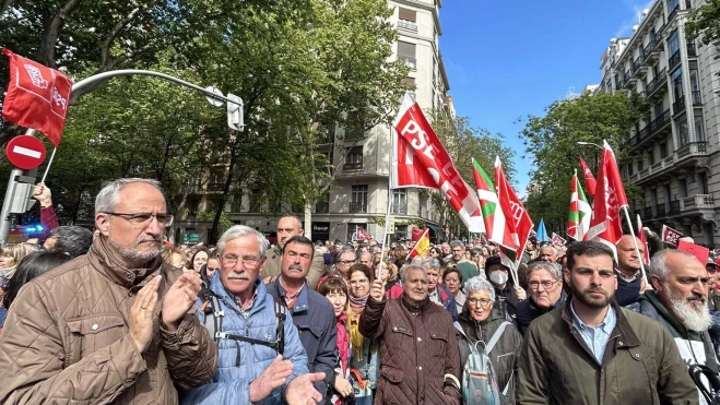 Eso sí, los discursos se intercalaron en los exteriores de la sede con los gritos de los manifestantes: “¡No estás solo!”, “¡Pedro, quédate!”, “¡No pasarán!”, “¡Pedro, estamos contigo!”, “¡Presidente, presidente!”… Ya sin paraguas, porque el sol ganó la batalla a las nubes, miles de personas coreaban su apoyo a Pedro Sánchez sin que, al menos en los primeros momentos, hubiera que reseñar algún tipo de incidente, pese a la amenaza de grupos ultras de hacerse presentes también en Ferraz para confrontar con los socialistas. De hecho, alrededor 150 agentes de la Unidad de Intervención Policial (UIP) de la Policía Nacional, los antidisturbios, velan por la seguridad en los exteriores de la sede de los socialistas.