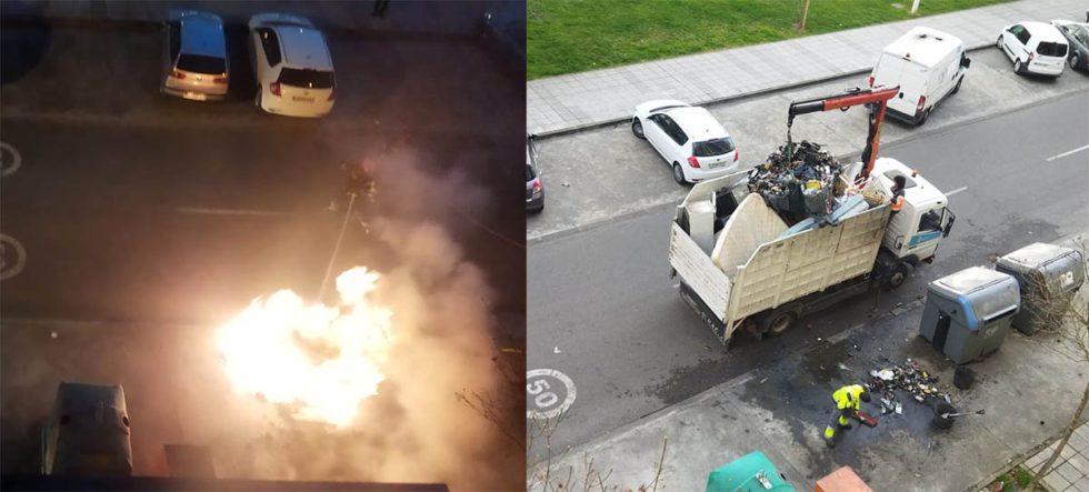 Recordemos que esta semana la empresa FCC cifraba en "más de 300 contenedores movidos, volcados, manipulados en sus bulones e incluso quemados, y más de 12 siniestros contra equipos móviles, maquinaria e instalaciones fijas (pinchazos, sabotajes de cerraduras)", desde que comenzase el paro.