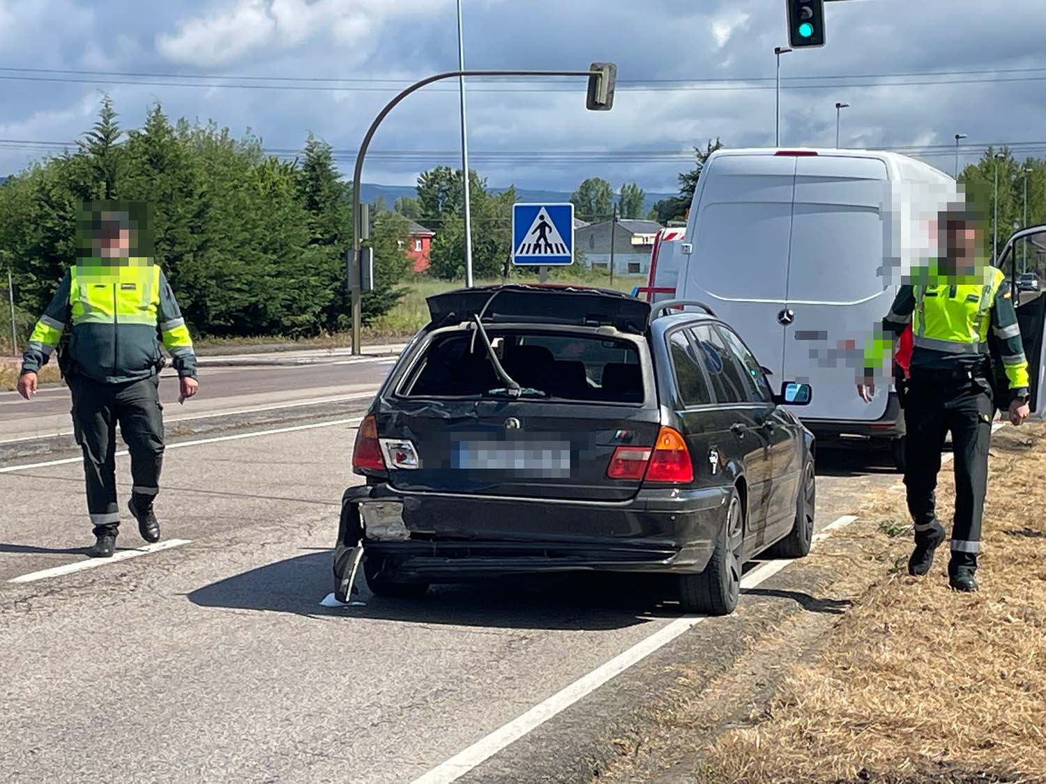 Si bien, ninguno de los ocupantes de ambos vehículos ha precisado atención médica, si se aprecia que la parte frontal de la furgoneta, así como la parte trasera del turismo tienen importantes daños debido al choque.