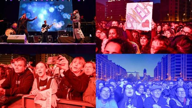 El dúo formado por Ángeles y Dioni, Camela, puso en pie a Ponferrada como previa al festivo del 23 de abril, Día de Castilla y León, con su concierto de grandes éxitos en solar del viejo Carrefour de la capital. Al ritmo de 'Cuando zarpa el amor' y 'Nunca debí enamorarme', bercianos de todas las edades celebrará los 31 años de carrera musical de este grupo español mítico.