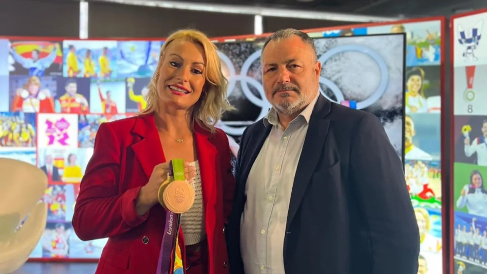 El alcalde de Camponaraya, Eduardo Morán, ha asistido este jueves en la sede del Comité Olímpico Español (COE) de Madrid a la rueda de prensa en la que Lydia Valentín ha anunciado su retirada como haltera profesional.