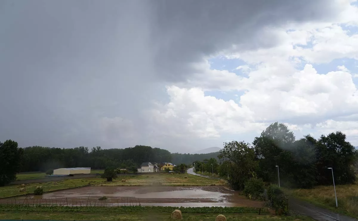 La fuerte tormenta de este martes, que activaba la alerta amarilla en todo El Bierzo, ha derribado el muro de las piscinas de Fuentesnuevas.