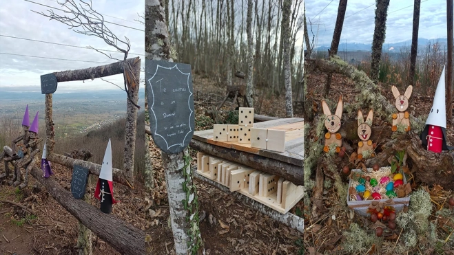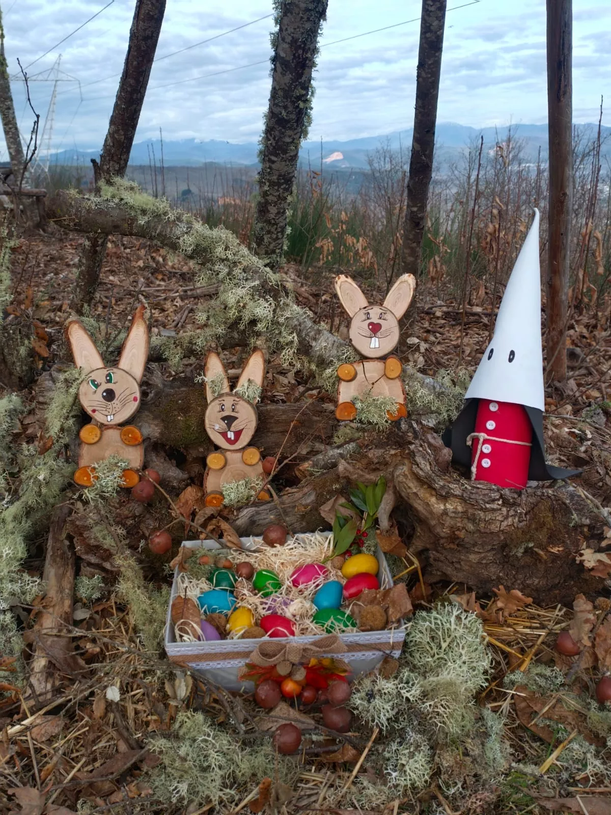 El columpio de Rimor y la zona que lo alberga se ha puesto sus galas para dar la bienvenida a la Semana Santa en El Bierzo. El constructor del columpio de Rimor, Alberto Regueras, ha decorado las figuras y lugares con motivos tradicionales de la semana de pasión, así quienes lo visiten en estas fechas podrán encontrarse papones, conejos y huevos de Pascua, etc.