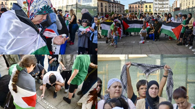 "El ejército del estado asesino de Israel tras haber recibido órdenes de alto al fuego por parte de la Corte Internacional de Justicia, decidió desafiar al mundo y cometer una masacre que no se nos olvidará en la vida en la noche del domingo 26 de mayo contra el campo de desplazados de Ráfah (formado mayoritariamente por niños). Voy a hacer énfasis y memoria a las víctimas y repito víctimas civiles, que se encontraban supuestamente en una zona declarada por el ejército sionista como segura. En la noche del domingo en el campamento de desplazados de Ráfah el ejército israelí bombardeó, decapito y quemó vivas a más de 45 personas (la mayoría de ellos niños)", rezaba el manifiesto leído en la Plaza del Ayuntamiento.
