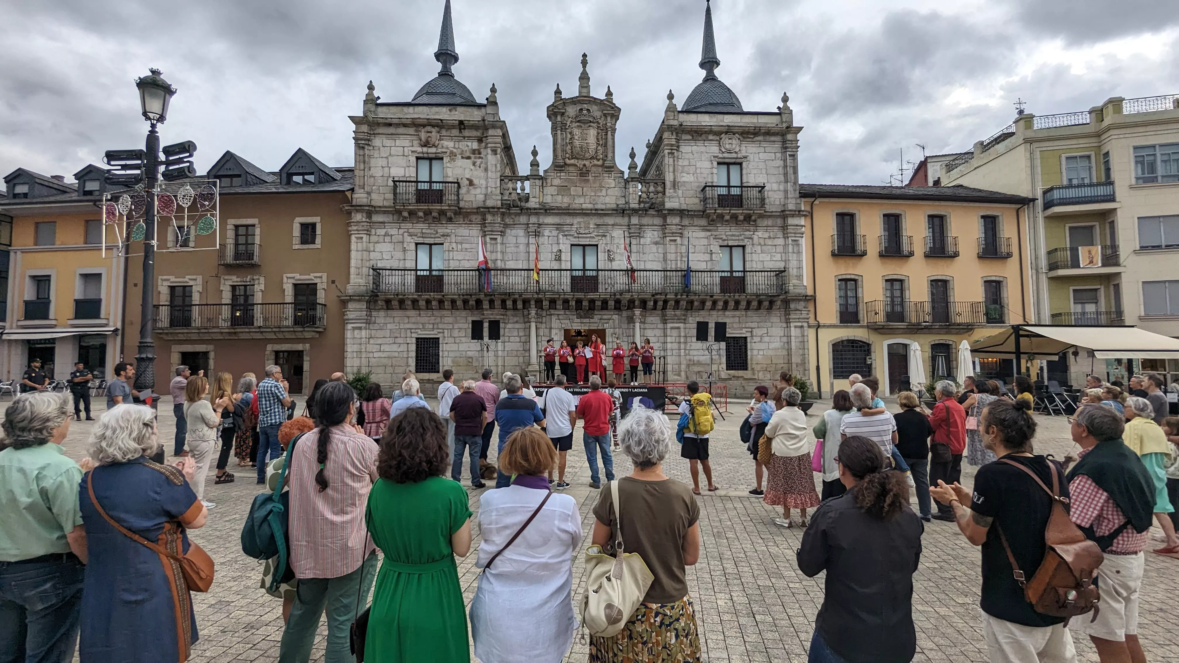La Plataforma contra las violencias machistas Bierzo y Laciana se ha concentrado este viernes en la Plaza del Ayuntamiento para mostrar su apoyo a la futbolista Jenni Hermoso y en repulsa hacia los comportamientos de Luis Rubiales, presidente de la RFEF.