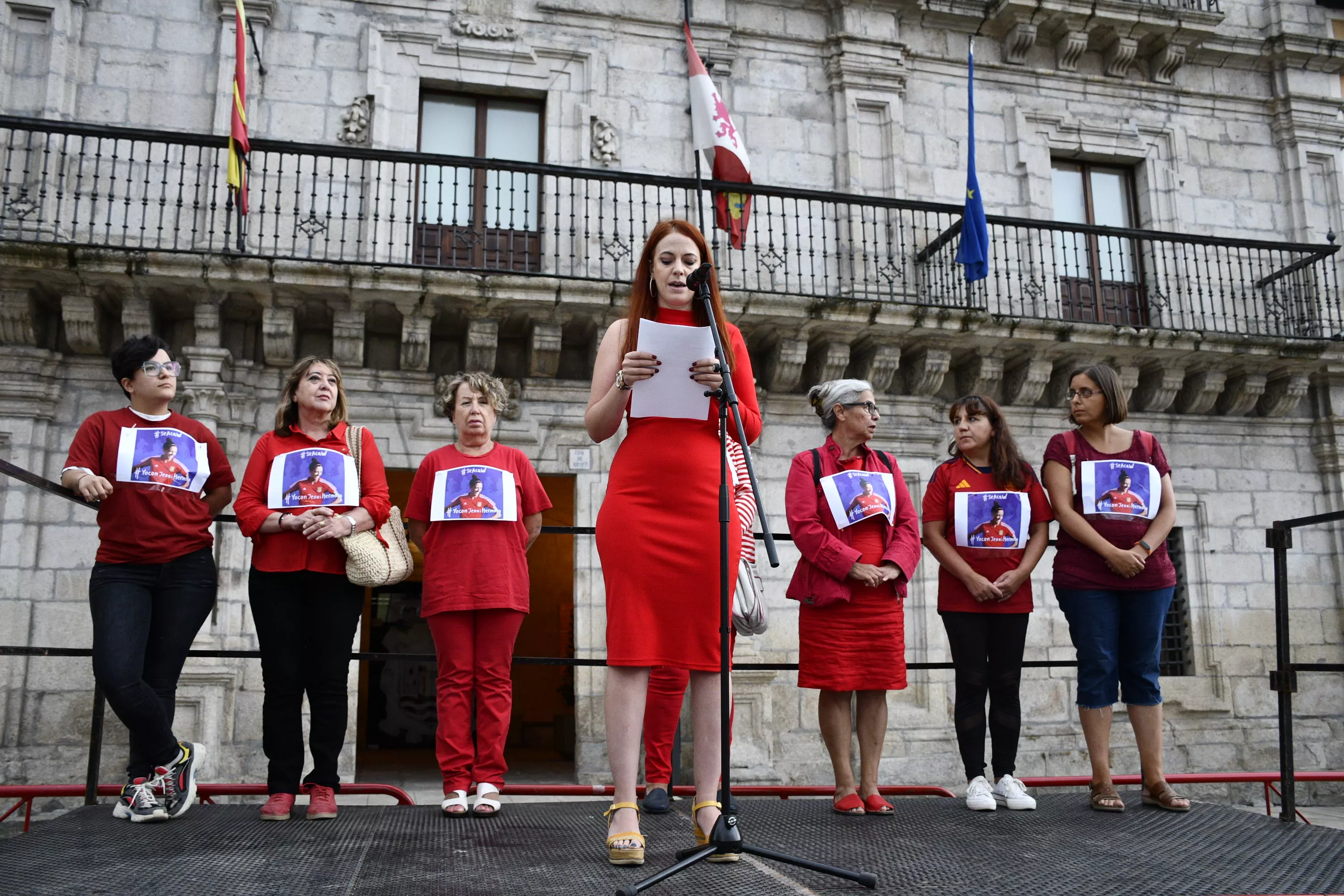 El manifiesto ha sido leído por la antigua concejala de Igualdad, Lorenza González (Podemos), que ha cargado contra la actitud "machista de Rubiales: de nuevo un hombre utilizando nuestro cuerpo como parte de la fiesta". En una tímida concentración a la que se han acercado los vecinos de Ponferrada, han pedido la dimisión del presidente de la RFEF y han mostrado su total apoyo y defensa de Hermoso que sufre, además, "violencia mediática" desde que decidió denunciar lo sucedido con su superior.