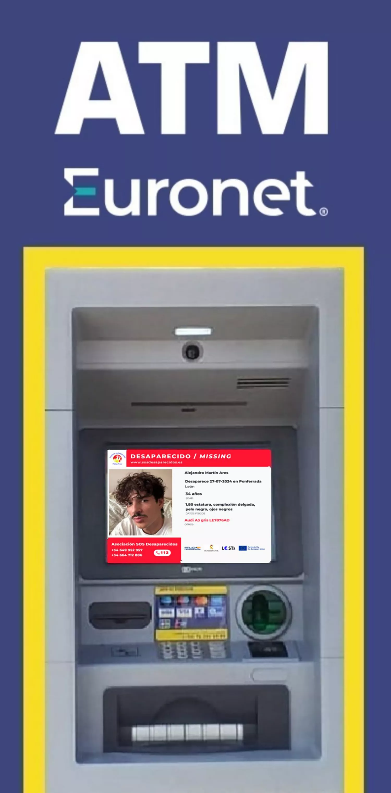 📢 Activamos la Red de cajeros automáticos de Euronet ATMs Cajeros España, para difundir la alerta de Alejandro, desaparecido en #Ponferrada.