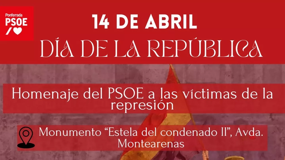 El PSOE de Ponferrada marca en su agenda un acto para celebrar el Día de la República que tendrá lugar este domingo, 14 de abril.
