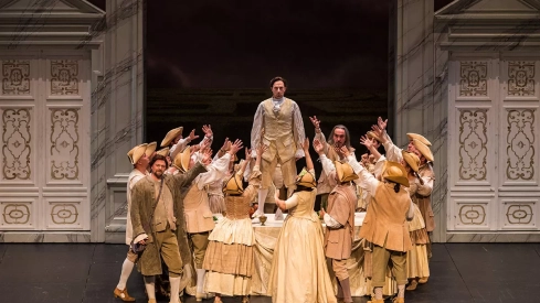 Don Giovanni es un drama jocoso en dos actos con música de Mozart y libreto en italiano de Lorenzo da Ponte basado en la obra original El burlador de Sevilla de Tirso de Molina. Se estrenó en el Teatro de Praga en octubre de 1787. El libreto de Da Ponte fue considerado por muchos en la época como dramma giocoso, término que denota una mezcla de acción cómica y seria.