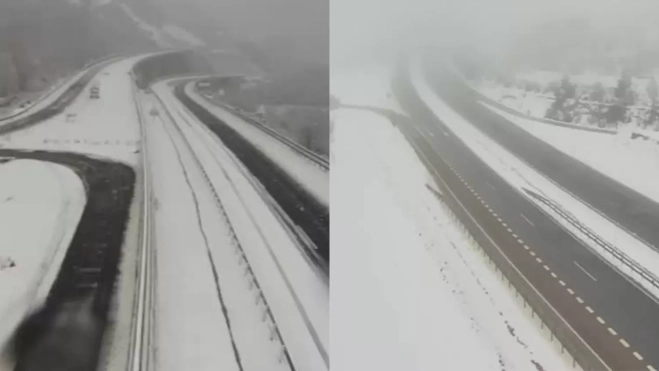 La nieve caída en las últimas horas está complicando el tráfico en la A-6 a su paso por la Comarca del Bierzo.