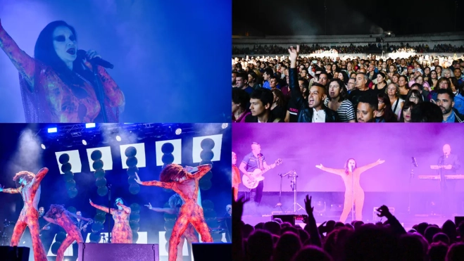 El esperado concierto de Fangoria, uno de los grupos estrella del programa de La Encina 2023, comenzaba a las 22:00 horas en un Auditorio lleno y deseoso de ver a la banda y a su espectacular grupo de bailarines. Fangoria, con Alaska a la cabeza, ofreció un recital de casi dos horas en la que la energía no cesó sobre el escenario.