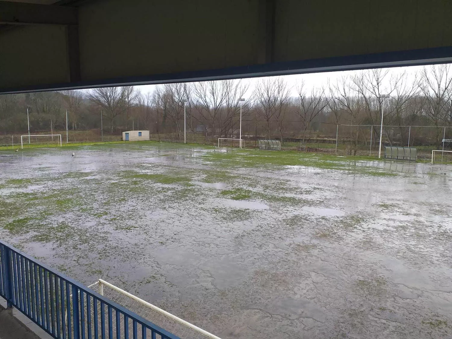 Las intensas lluvias de este miércoles, que mantienen activado el aviso amarillo, han dejado completamente anegado los campos de fútbol de Flores del Sil. Tal es el hartazgo entre los usuarios de estas instalaciones, que han decidido recoger firmas a través de la plataforma Change.org para reclamar al Ayuntamiento de Ponferrada que cumpla con su promesa electoral e instale césped artificial en los campos.