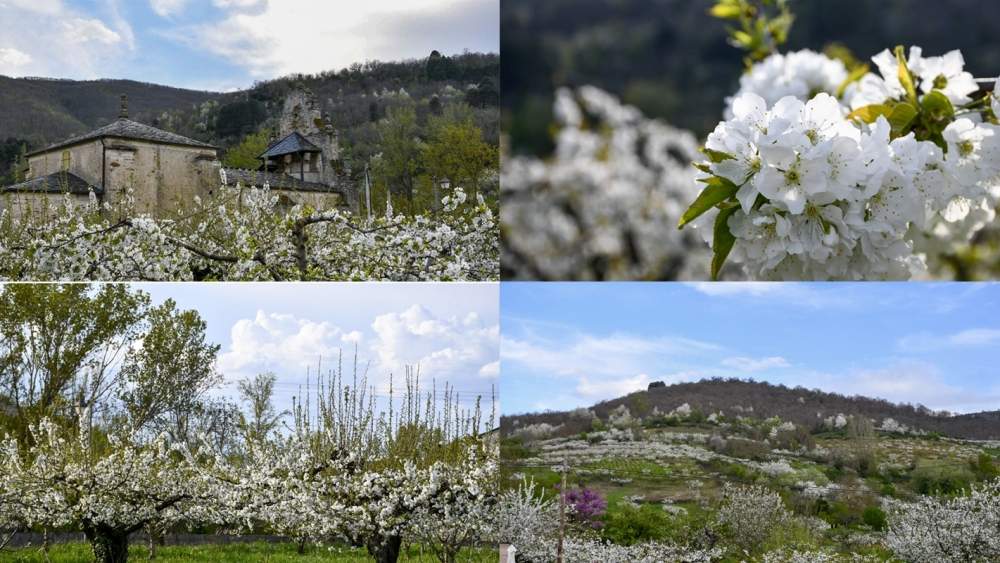 Los paisajes de Rimor se unen a los de Corullón dejando una de las estampas más características de la primavera. Un manto blanco que parece caer del cielo y que, de forma progresiva, irá cubriendo los pueblos.