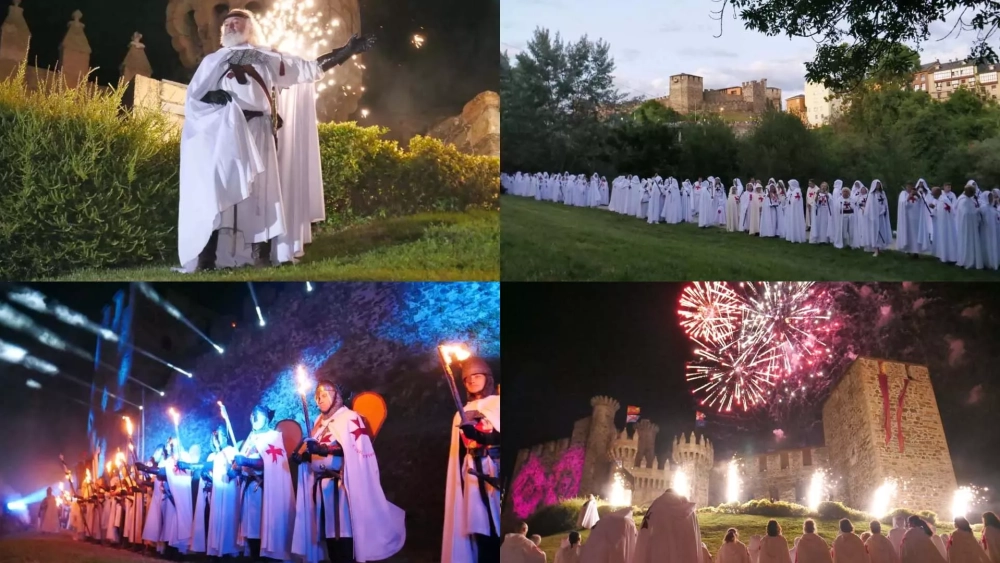 “Yo, Guido de Garda, maestre de la fortaleza de Ponsferrata, comprometo a todo el pueblo de Ponferrada para que vuelva cada año a renovar este compromiso festivo con su historia y su leyenda hasta que el tiempo llegue a borrar la línea del horizonte”. Con estas palabras la capital berciana sella su voto templario una edición más. El momento culmen, la entrada por la portada del Castillo, estuvo como es habitual acompaña por la sublime participación de la Banda de Música Ciudad de Ponferrada.