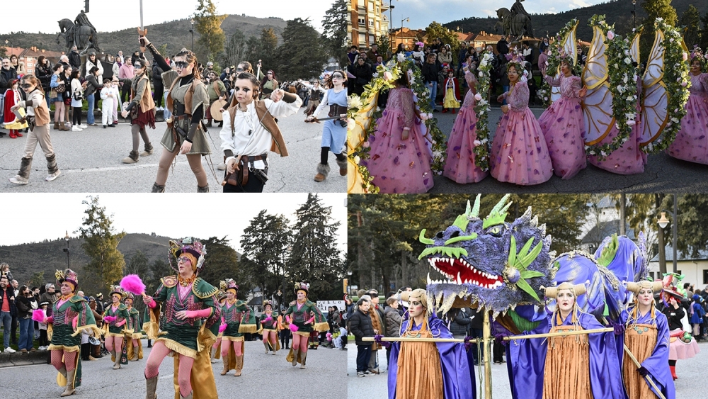 Las calles de Ponferrada se llenaron esta tarde de color con motivo del Martes de Carnaval con temáticas coloridas, variadas y de todos los ámbitos