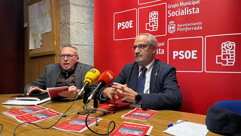 El grupo socialista del Ayuntamiento de Ponferrada ha presentado este martes una nueva edición de la revista 'Puente de Hierro', la primera de este nuevo mandato como oposición. En doce páginas, el PSOE de la capital berciana expone su punto de vista y la labor de oposición que están llevando a cabo. Han elegido para la portada una foto en blanco y negro del Ayuntamiento de la ciudad, y no está elegida al azar, sino que pretende simbolizar lo que para ellos son "100 días perdidos", aludiendo a los primeros cien días del nuevo equipo de Gobierno, según el exalcalde Olegario Ramón.
