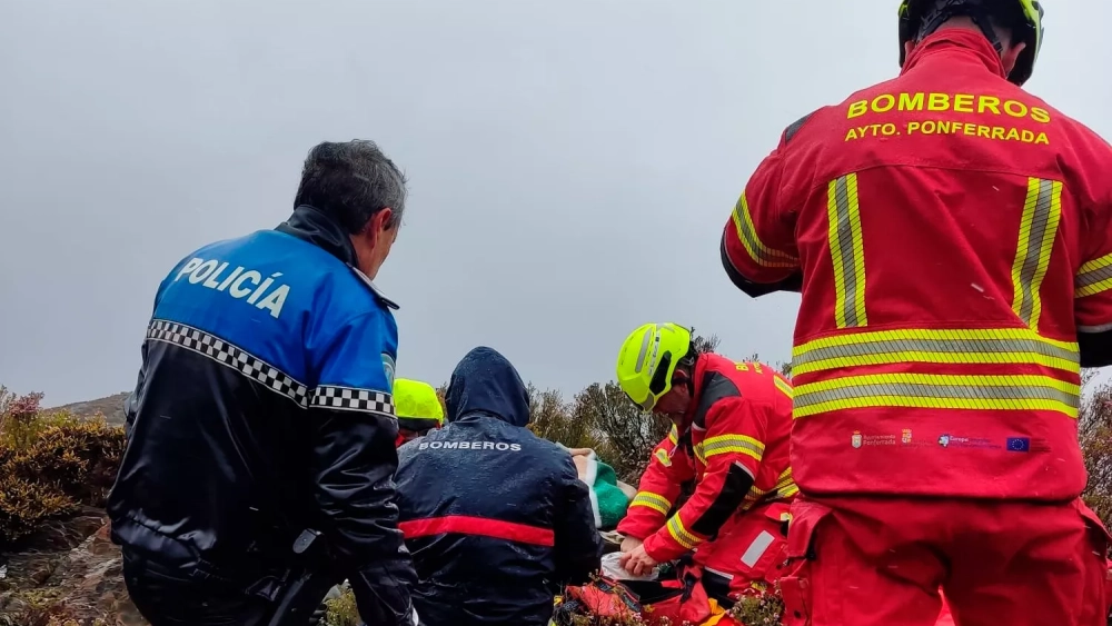 Al llegar, el equipo de Bomberos entablilla la pierna del cazador y con la ayuda de la Policía Municipal tienen que portearlo en camilla unos 400 metros (con la dificultad añadida de encontrarse en un terreno muy montañoso y con importantes pendientes) hasta llegar al todoterreno que ha sido evacuado por personal de bomberos de Ponferrada, junto a Cuerpo Nacional de Policía, hasta la localidad de Villanueva de Valdueza donde espera al personal de Sacyl que, tras atender al herido en el lugar, le traslada en UVI móvil al Hospital del Bierzo.