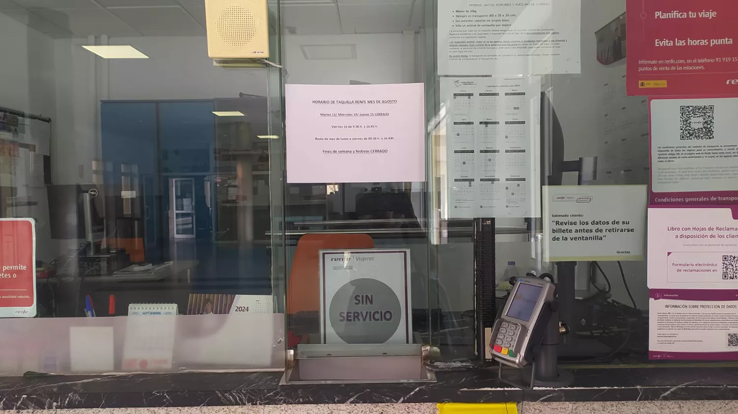 El horario de la taquilla de venta de billetes de la estación de tren de Ponferrada reduce su horario "puntualmente". "Se trata de una situación temporal y operativa, que no permite ofrecer el servicio habitual a los clientes, por "causas sobrevenidas". Así lo aseguran desde Renfe a InfoBierzo.