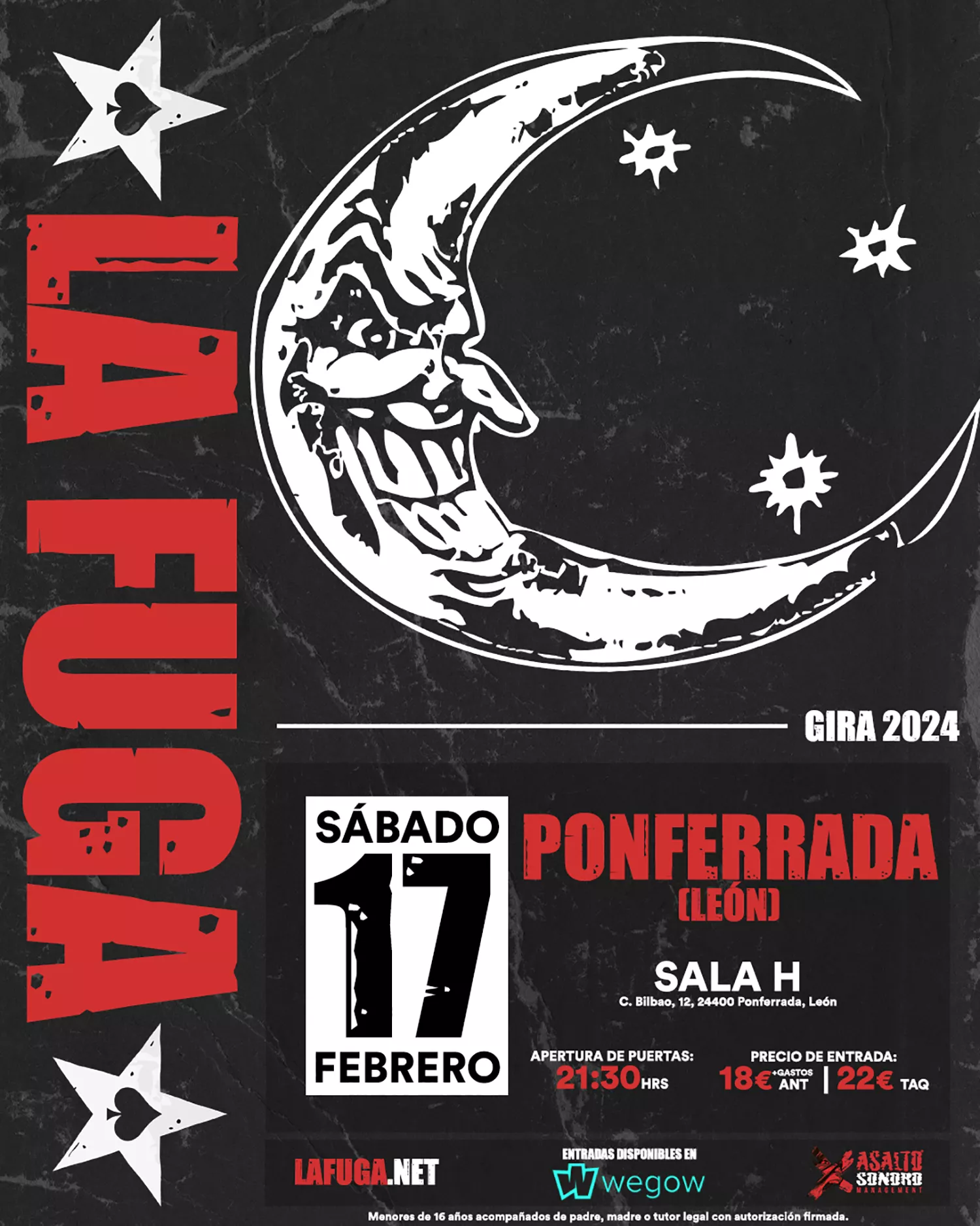 Los ponferradinos podrán disfrutar de la banda este sábado en la Sala H, situada en la calle Bilbao número 12 de Ponferrada de la nueva gira 2024 de La Fuga. Las entradas están a la venta por un precio de 18 euros más gastos anticipadas y 22 euros en taquilla.
