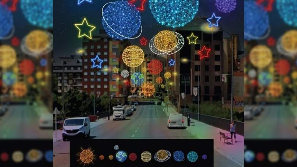 La iluminación navideña de Ponferrada de este año tendrá como protagonista una recreación del Sistema Solar sobre el Puente García Ojeda, donde se instalará un conjunto de planetas luminosos, cuarenta bolas, cuarenta estrellas y cuarenta cometas con luz dinámica, suspendidos a ocho metros de altura sobre las farolas. Esta intervención será la gran novedad del proyecto municipal de ornamentación, que mantendrá la mayoría de los atractivos estrenados durante las pasadas fiestas. El prototipo se completará con una gran estrella con cola situada frente al Castillo de los Templarios.