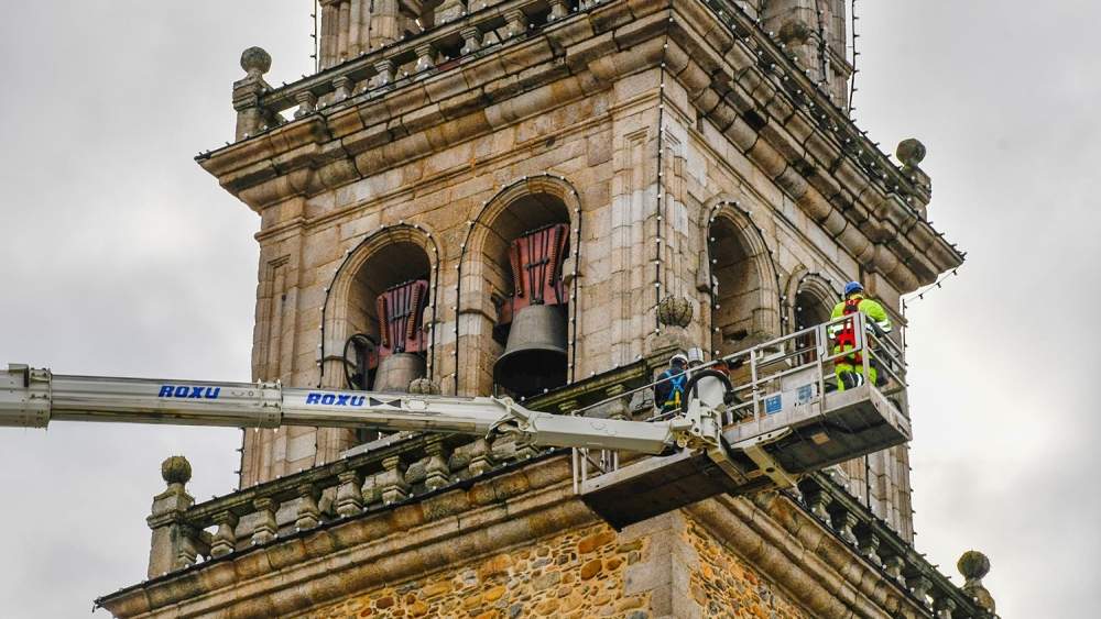Precisamente este martes se pueden observar a operarios municipales trabajando en la instalación lumínica con una grúa y se observan ya las luces engalanando la icónica torre.