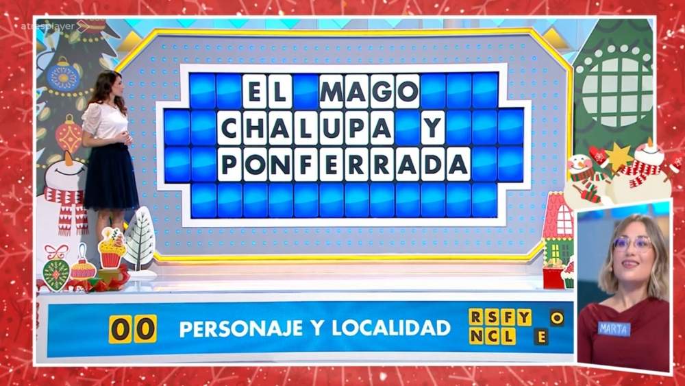 Ponferrada y su personaje más navideño han llegado este viernes a uno de los concursos más conocidos y vistos de la televisión nacional: La Ruleta de la Suerte de Antena 3 escogió 'El Mago Chalupa y Ponferrada' como la respuesta a su panel final.
