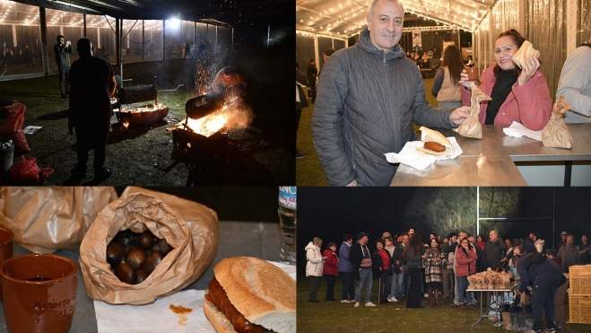 Como es costumbre, el público pudo disfrutar de un vaso de barro conmemorativo, acompañado de un bocadillo de chorizo, castañas asadas, vino o agua y la imprescindible queimada.